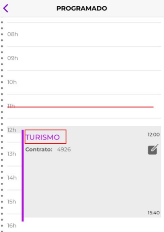 Após confirmação da viagem no painel de escala de serviço dentro do SigaFR, no aplicativo Ta-On dentro da rotina Baixa Fretamento você irá visualizar a viagem como ‘Turismo’. Ela estará disponível na grade de horários dentro do horário da viagem, conforme abaixo.