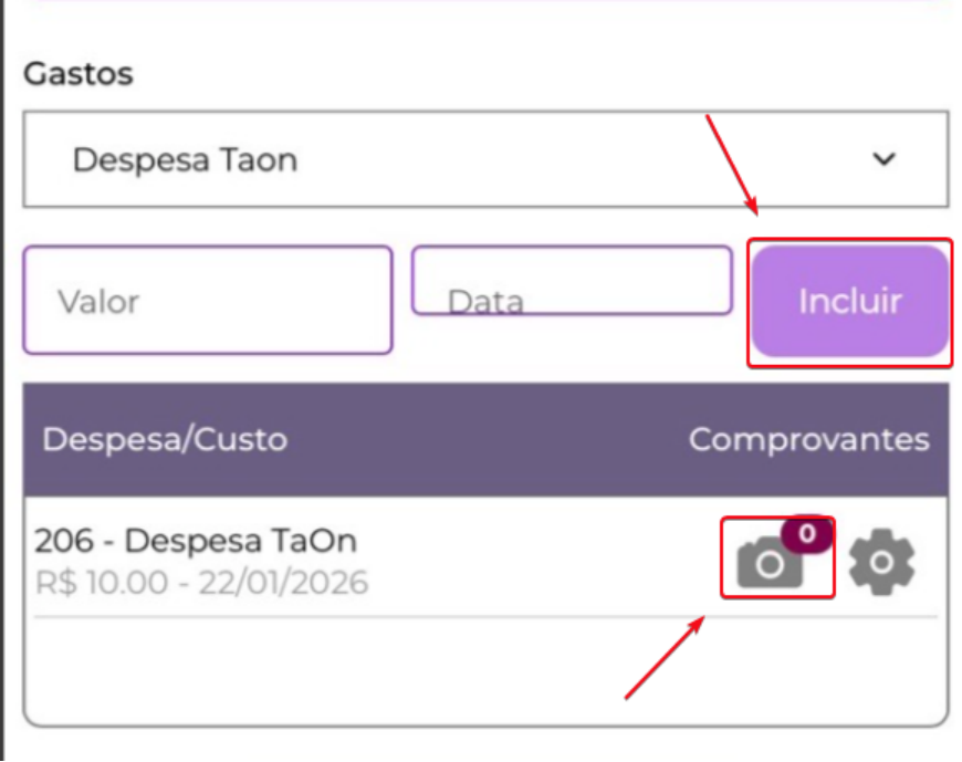 Após incluir a despesa, você pode associar a ela a foto de um comprovante: