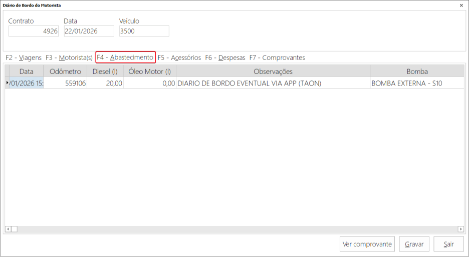 Dentro do Modulo SigaMF, Será possível ver o abastecimento: