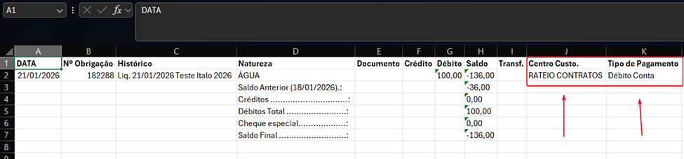 O desenvolvimento desta funcionalidade tem como objetivo acrescentar novas colunas ao excel criado a partir do extrato. As novas colunas são Centro de Custos e Tipo de Pagamento.