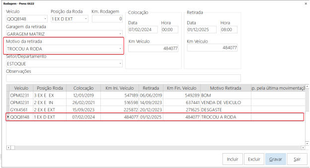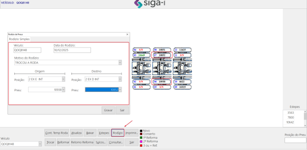 Assim, ao realizar movimentações no Siga com o motivo TROCOU A RODA, o sistema alimentará automaticamente o mesmo motivo no Afere Fácil.