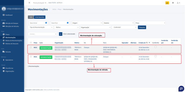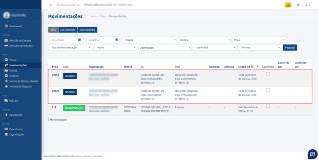 No site da Afere Fácil, na tela de MOVIMENTAÇÕES ira apresentar as informações de acordo com o lançado no Siga. Movimentação de Rodízio: