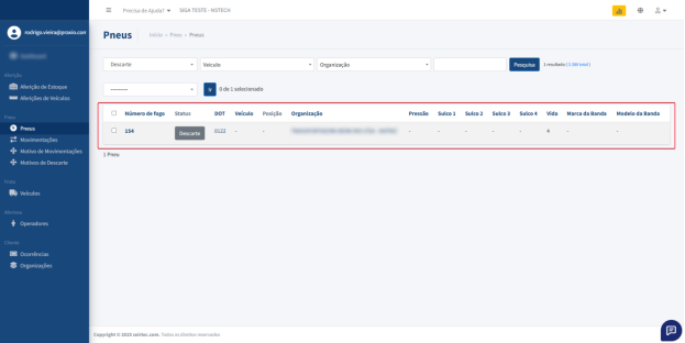 Retirada realizada pelo SigaMF: PNEU>RODAGEM>COLOCAÇÃO/RETIRADA.