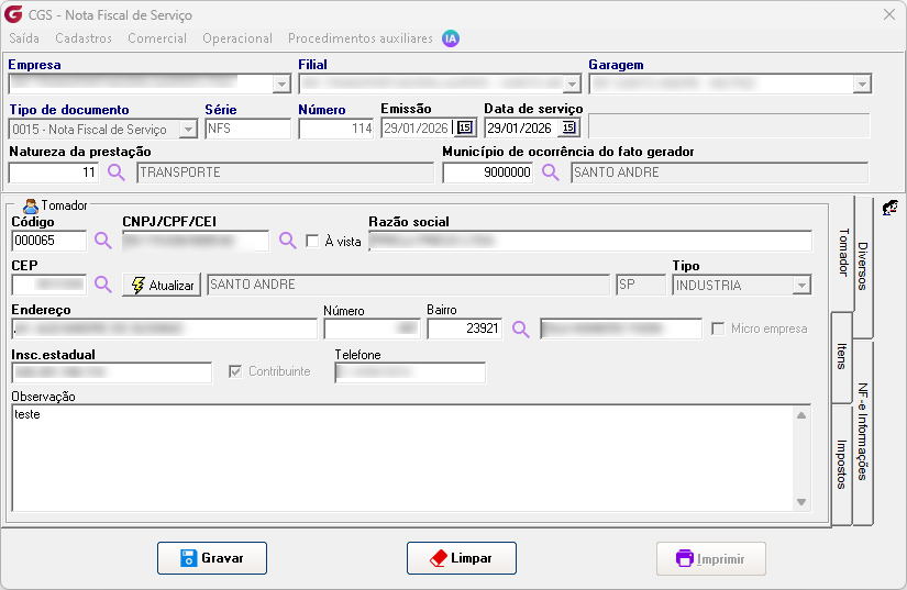 Após a correta parametrização, a emissão da NFSe poderá ser realizada normalmente por meio das seguintes rotinas: