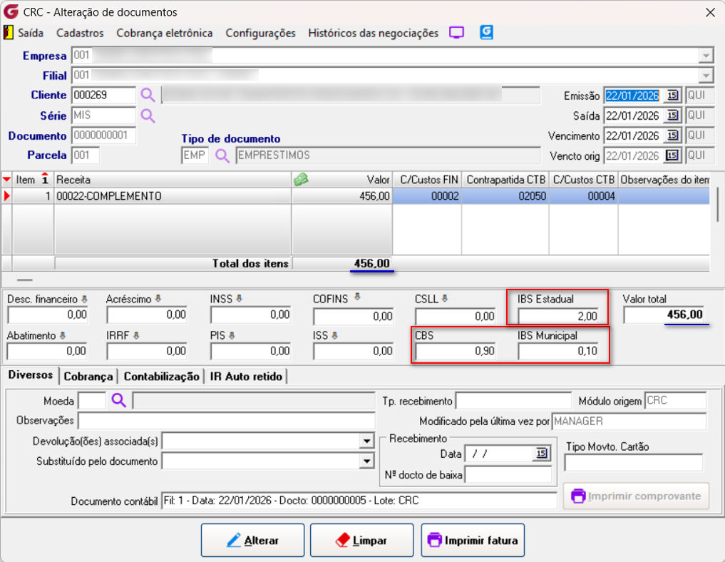 Importante: Neste momento, os valores referente a Reforma Tributária ainda não serão contabilizados nem deduzidos do valor bruto do documento.