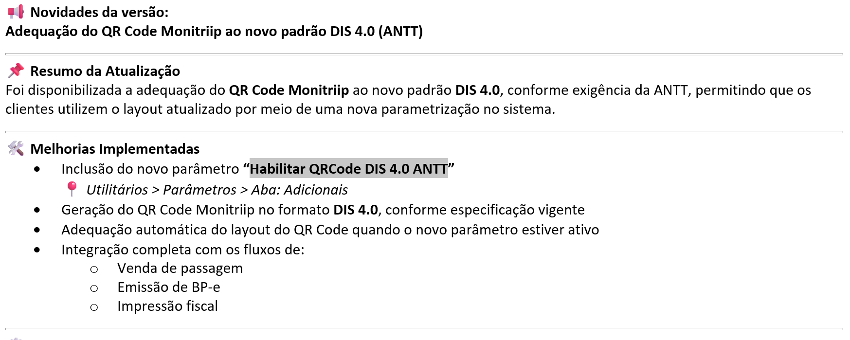 Adequação do QR Code Monitriip ao novo padrão DIS 4.0 (ANTT). |