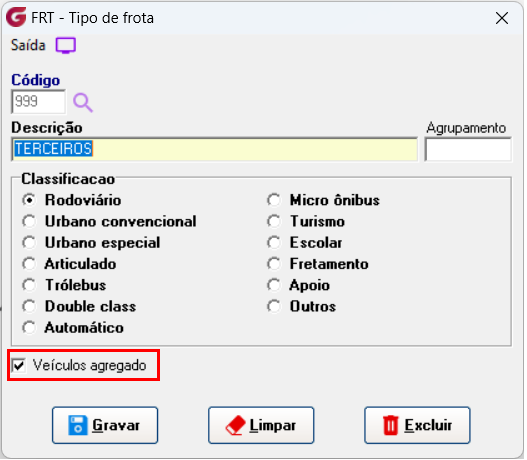 Para identificar se o veículo é agregado ou não, enviamos o tipo do veículo a partir do "Tipo de Frota" configurado: