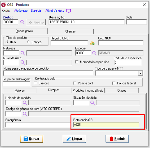 O sistema verifica o campo “Referência GR” do produto.