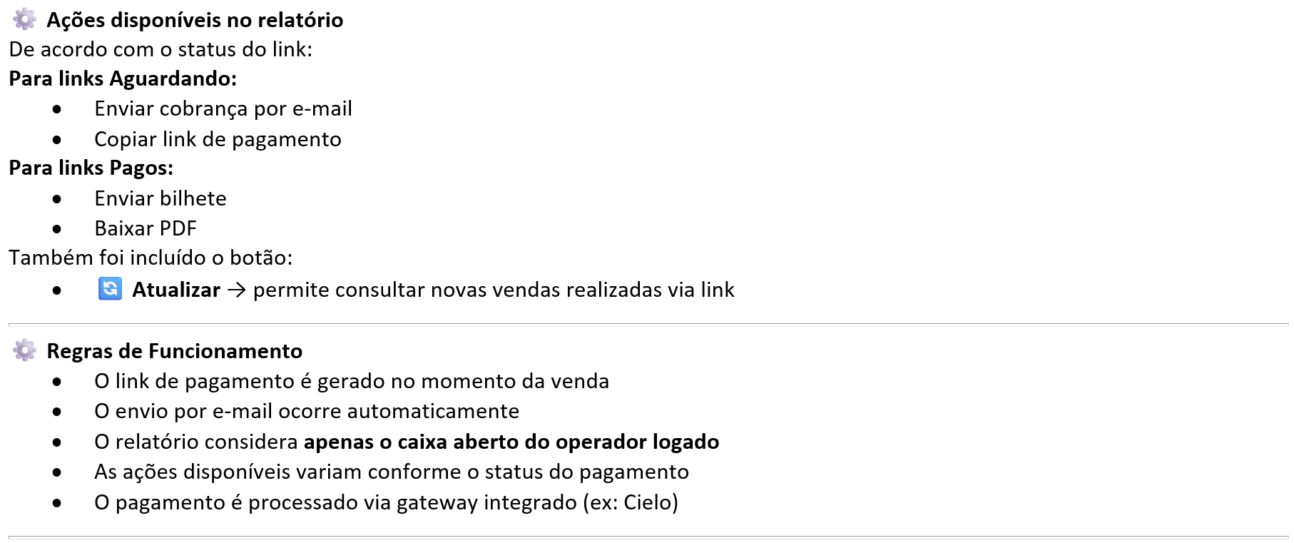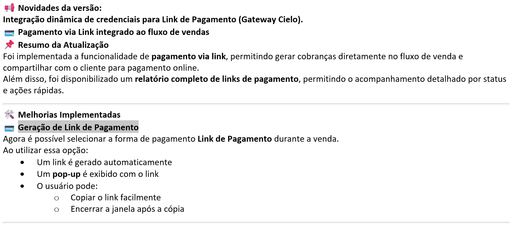 Integração dinâmica de credenciais para Link de Pagamento (Gateway Cielo). Pagamento via Link integrado ao fluxo de vendas |