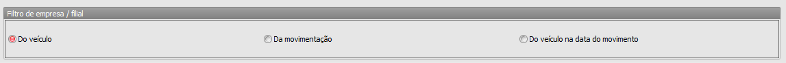 Filtro de empresa/filial - Defina se a empresa/filial deve ser a do veículo, a da movimentação ou a do veículo na data do movimento.