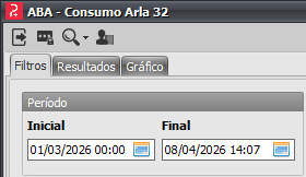 Aba filtros Período - Informe um intervalo entre datas para consulta