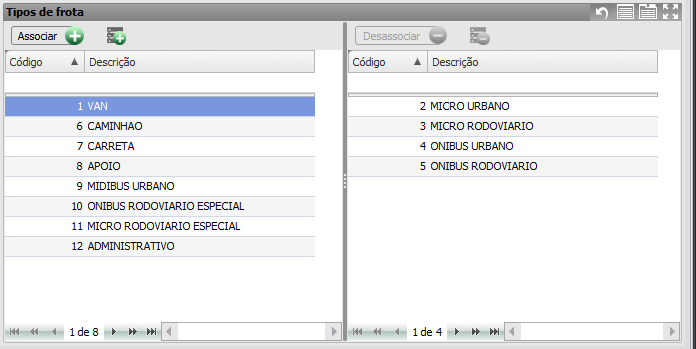 Tipos de frota - Associe os tipos de frota a serem consultados