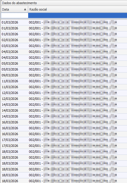 Dados do abastecimento Data - Data do abastecimento Razão social - Código da empresa e filial e descrição da razão social da empresa do movimento.