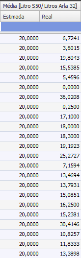 Média (combustível/ARLA) - Média estima de consumo de combustível pra cada litro de ARLA