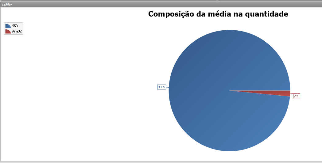 No grid inferior é apresentado gráfico com a composição média na quantidade