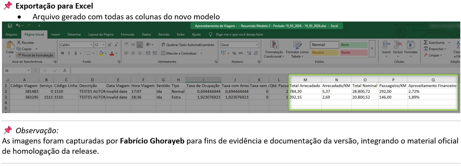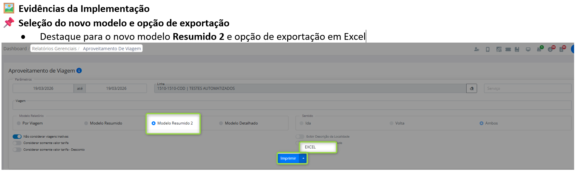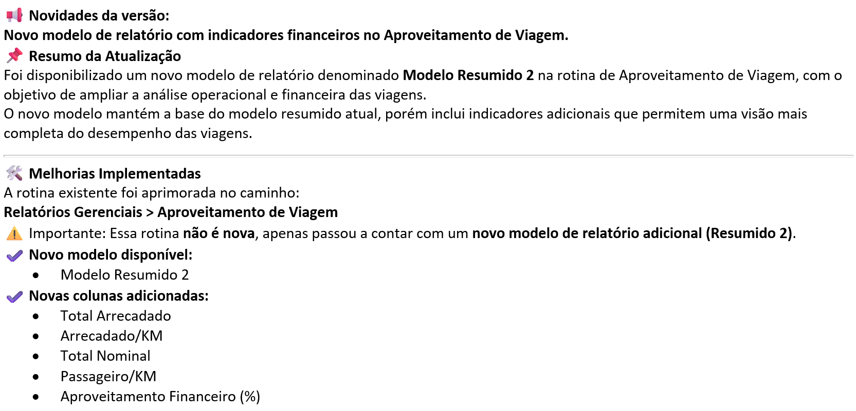 Novo modelo de relatório com indicadores financeiros no Aproveitamento de Viagem. Modelo Resumido 2 |