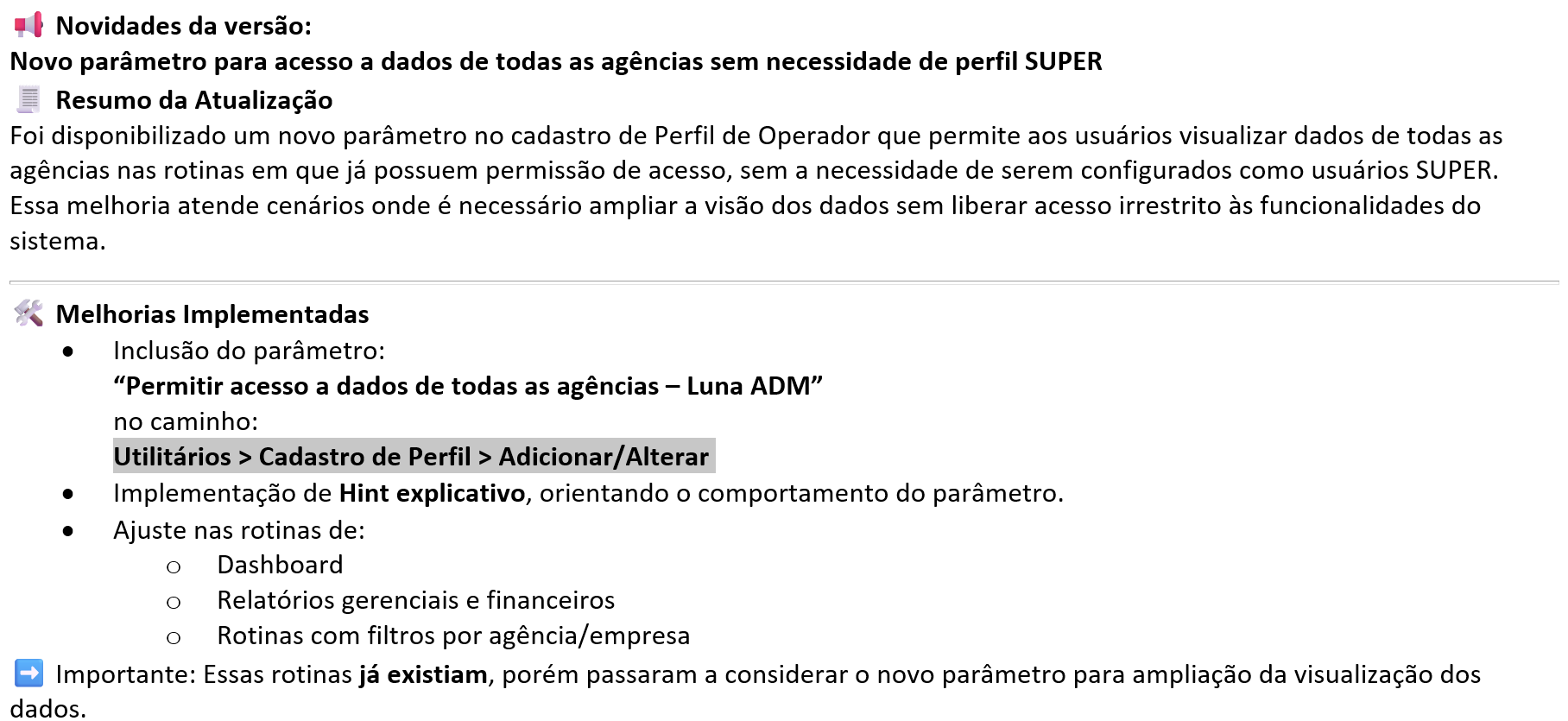 Observação Final Essa implementação estabelece um novo nível de controle de acesso, permitindo maior flexibilidade operacional sem comprometer a segurança das configurações do sistema. Imagens meramente ilustrativas: