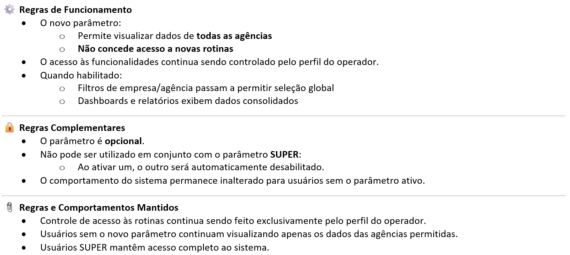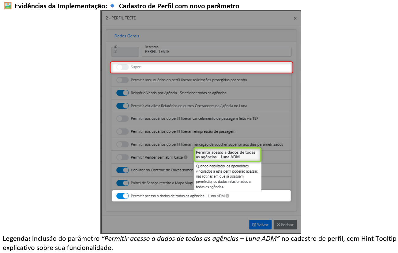 Novo parâmetro para acesso a dados de todas as agências sem necessidade de perfil SUPER. Permitindo assim acesso global aos dados de agências sem concessão de privilégios de SUPER. |