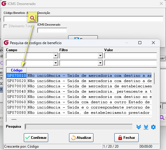 Pesquisar e informar o código de benefício (CBENEF) correspondente ao CST informado; ou