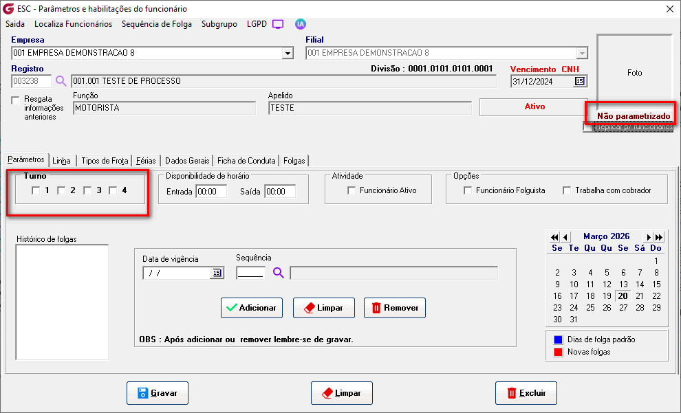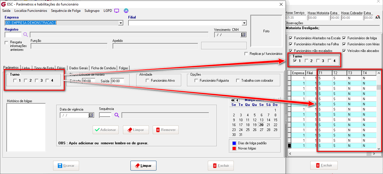 Esses turnos são associados a serviços da programação horária e replicados na escala diária. Na parametrização individual de cada funcionário é possível definir em quais turnos o colaborador está habilitado a trabalhar.