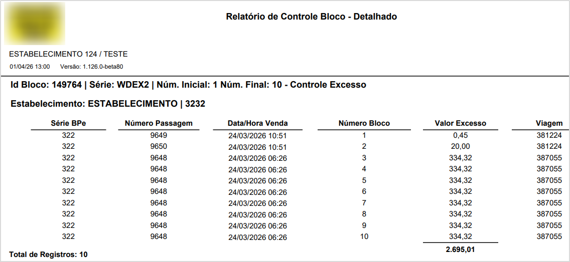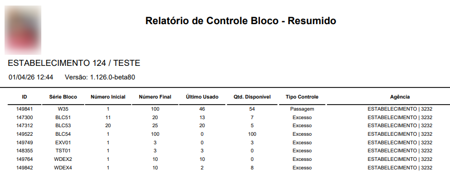 Melhoria no Relatório de Controle de Bloco – Tipo Excesso. |