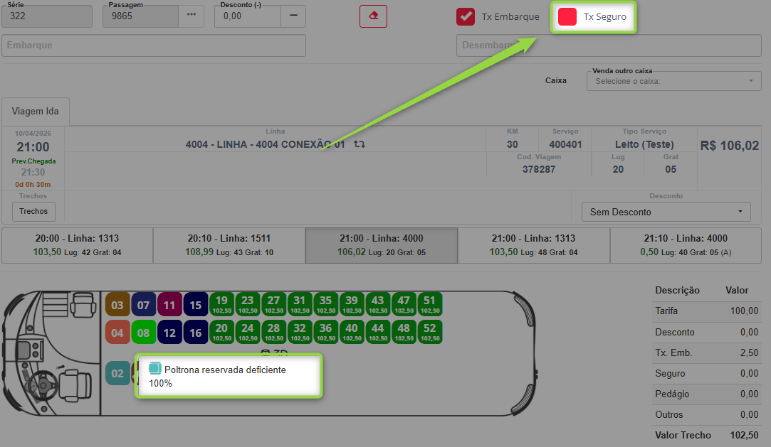 Exceção (Ação do Operador): Caso o operador deseje ofertar o seguro mesmo em situações de gratuidade 100%: