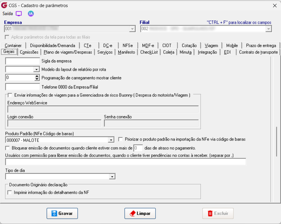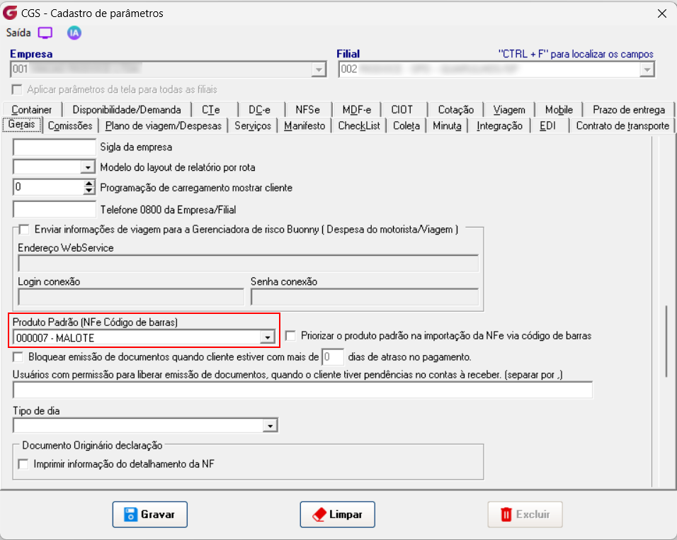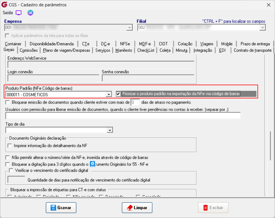 Seguindo a prioridade se não houver referencia cadastrada o sistema buscará o produto padrão nos parâmetros gerais