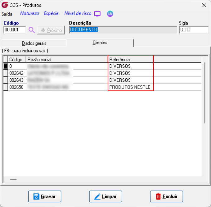 Obs: a busca da referência pode ser utilizada como diversos que pode ser utilizado em um produto diversos ou em um produto especifico para quando um novo produto que será transportado não possui referencia especifica utilizará a diversos