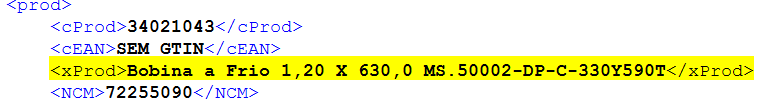 essas são das tags que informam o produto relacionado no XML