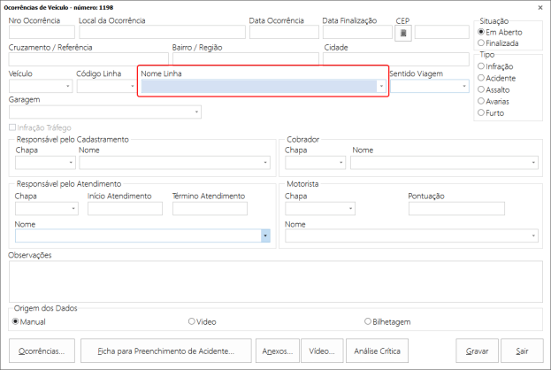 Na tela de ocorrencias de Veiculo foi implementado o campo “Nome Linha”. Imagens meramente ilustrativas: