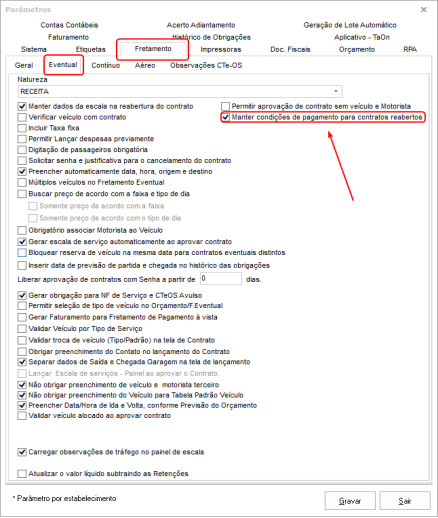 Foi criado o parâmetro “Manter condições de pagamento para contratos reabertos”: Imagens meramente ilustrativas: