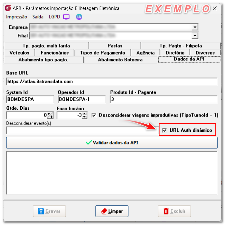 Nos parâmetros da bilhetagem eletrônica por seção (API), foi implementado o parâmetro URL Auth dinâmico com o objetivo de modernizar o processo de autenticação.