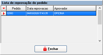 É aberta uma janela com o número do pedido, data de reprovação e o aprovador que recusou.