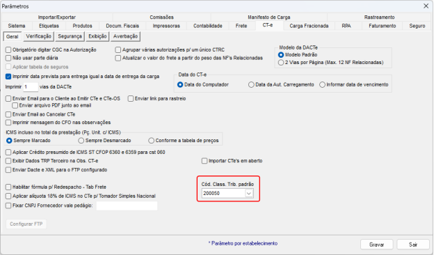 Implementar um parâmetro para padronizar o campo ClassTrib |