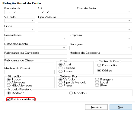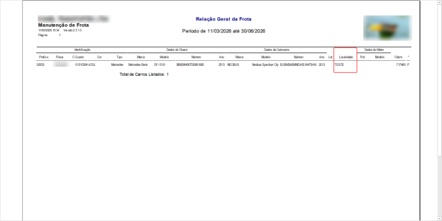 Com a Flag marcada, ao imprimir o relatório ira substituir a coluna “Acessórios” pela coluna “Localidade”.