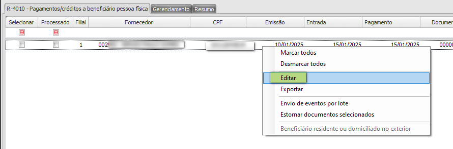 1. Procedimento para informar o Valor do Rendimento Tributável (R-4010)