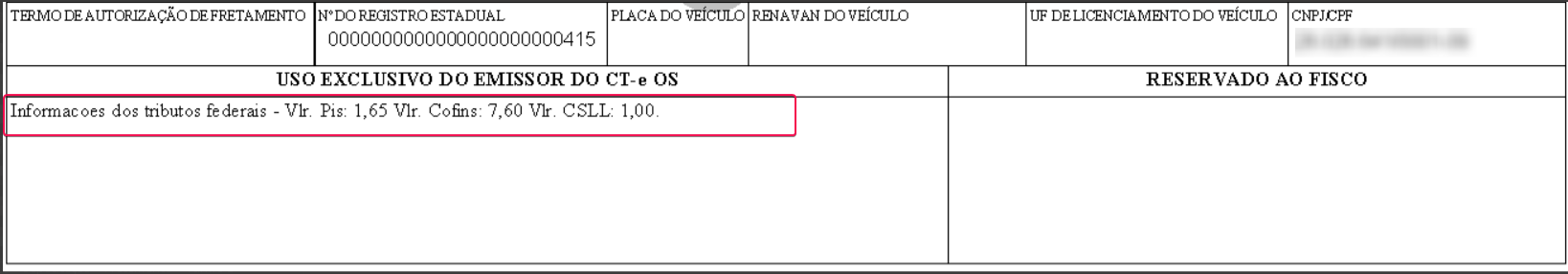 PIS, COFINS E CSLL sairão no campo abaixo da damdfe: