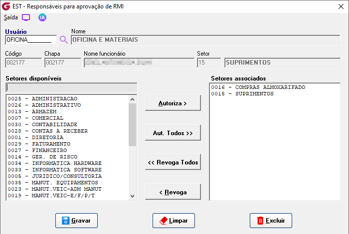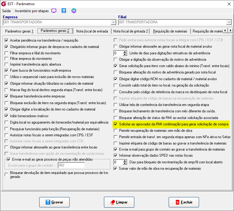 Caminho de acesso: >Cadastros>Responsáveis para aprovação de RMI >Diários>Saídas>Solicitação de requisição de material interna >Diários>Saídas>Aprovação de requisição de material interna >Diários>Saídas>Fechamento de requisição de material interna >Parâmetros>Estoque>Parâmetros gerais 2 >Parâmetros>Estoque>Requisiçaõ de materiais |