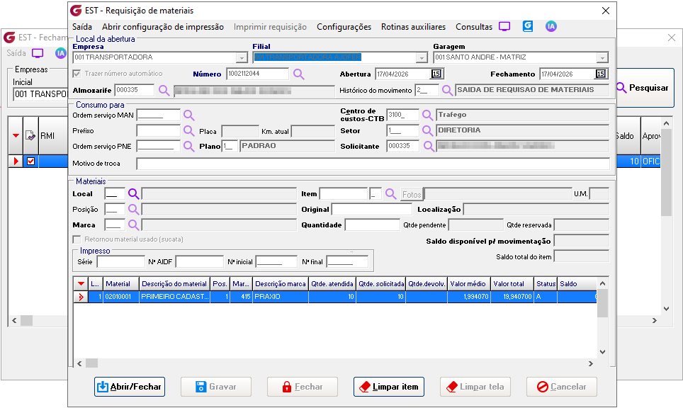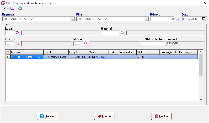Realizar solicitações de materiais para uso em setores diversos da empresa. |