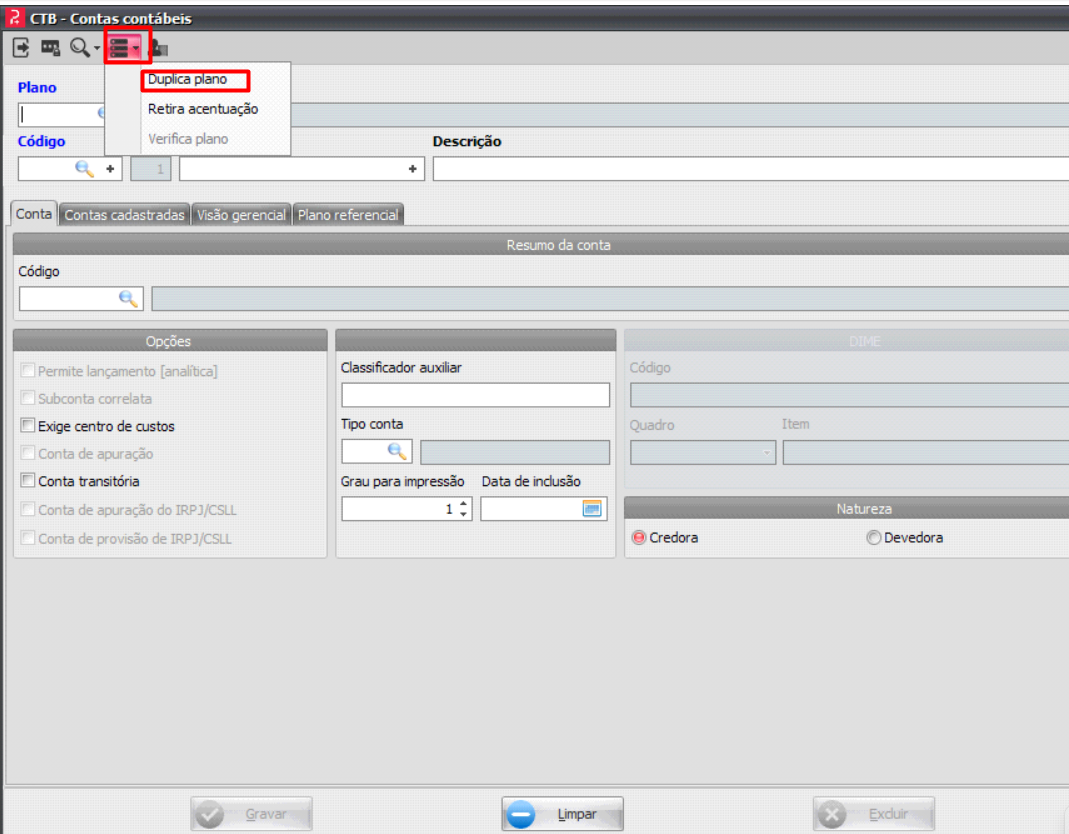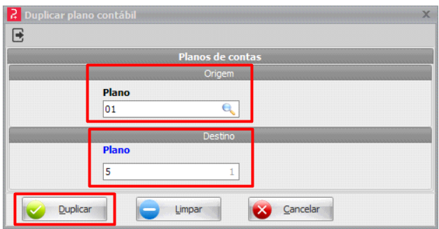 Orientar o usuário sobre como duplicar um plano contábil. |